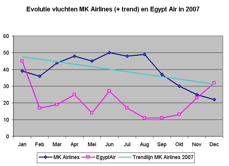 en Egypt Air en MK’s negatieve trendlijn qua aantal vluchten