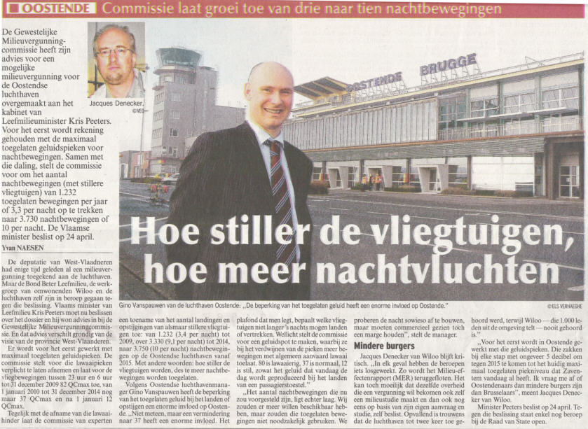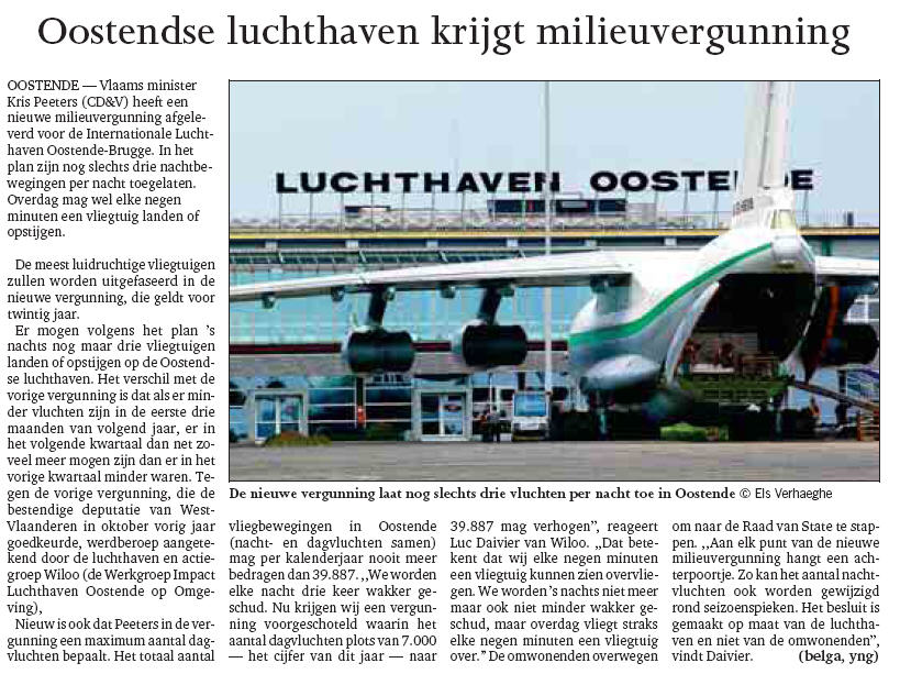 luchthaven van Oostende bekend! Wiloo reageert gematigd positief.