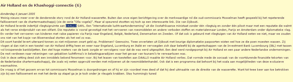Daallo tonnen zwart geld op. Een deel gewonnen uit haar