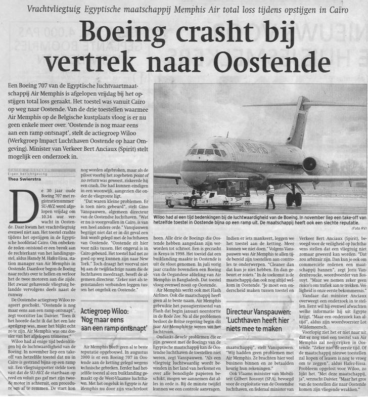Nieuws van 6 april beweert het Directoraat, dat de Air Memphis Boeing