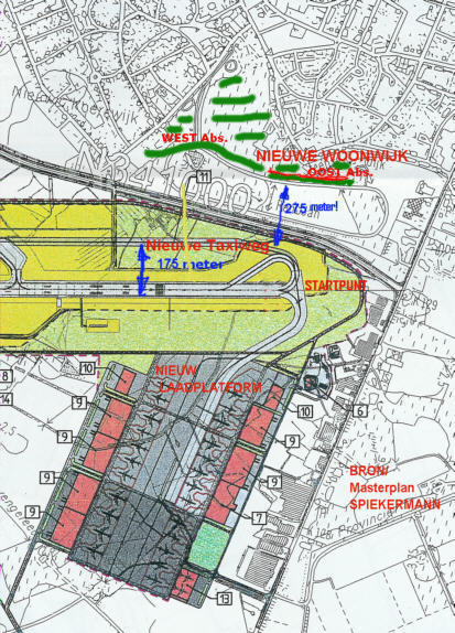 vliegtuigen straks 175 meter dichter bij de bewoning naar hun startpunt