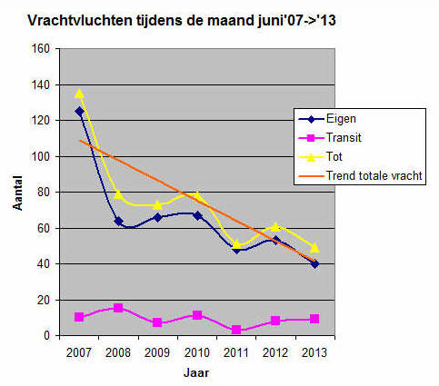 eigen (niet in transit) vrachtvluchten daalde in vergelijking met een
